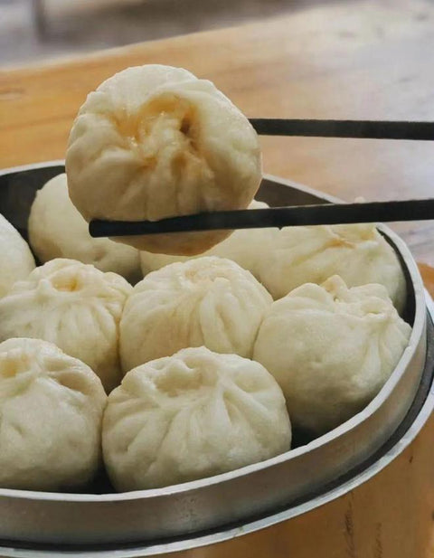 Xiaolongbao é um petisco tradicional chinês. A sua origem remonta aos “guantang bao” da capital Bianjing (atual Kaifeng) durante a Dinastia Song do Norte. De acordo com o livro "Dongjing Menghua Lu", já naquela época, havia nos mercados iguarias famosas, como os "Wanglou Shandong Meihua Baozi", conhecidos pela sua forma distinta: "quando levantados, parecem lanternas; ao serem colocados, pousam como flores de crisântemo."